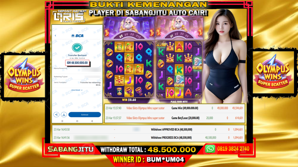 BUKTI KEMENANGAN 23 MARET DI GAME OLYMPUS WINS SUPER SCETER ( PRAGMATIC PLAY ) WITHDRAW 48.500.000.,-