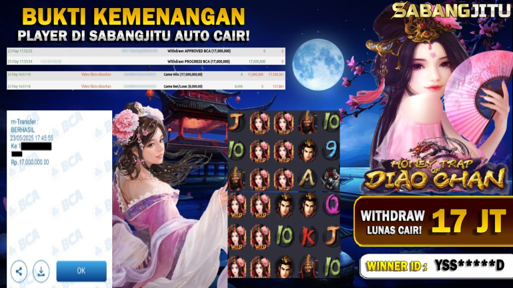 BUKTI KEMENANGAN 23 MEI DI GAME DIAO-CHAN WITHDRAW RP 17.000.000.,-