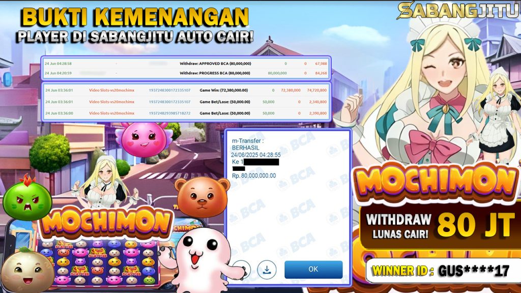 BUKTI KEMENANGAN 24 JUNI DI GAME MOCHIMON WITHDRAW RP 80.000.000,-