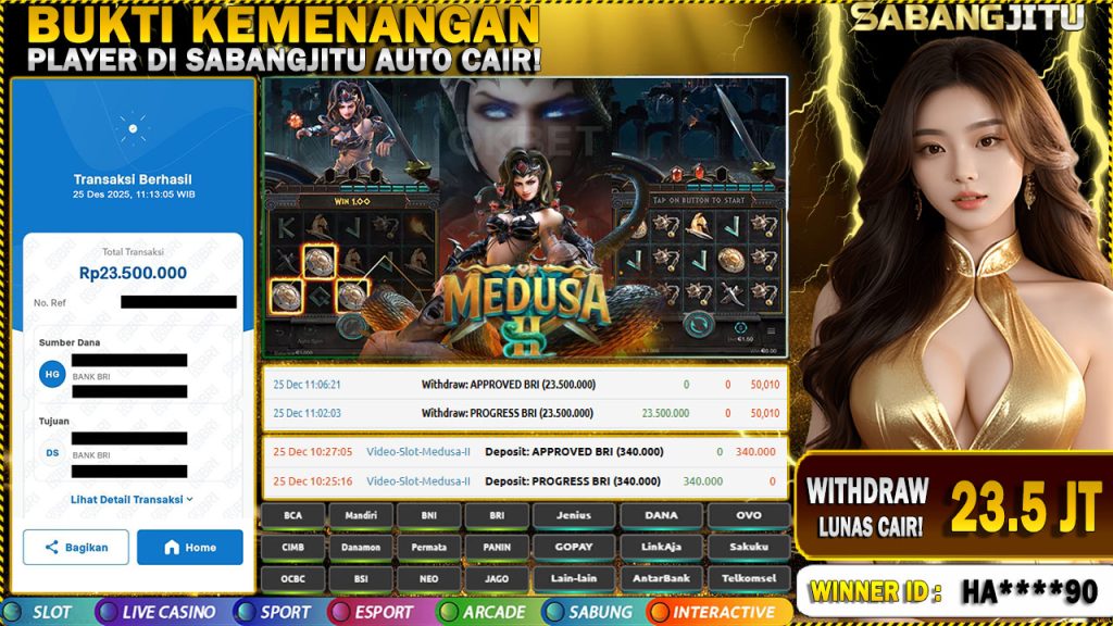 BUKTI KEMENANGAN 25 DESEMBER DI GAME Medusa 2 WITHDRAW 36.000.000.,-