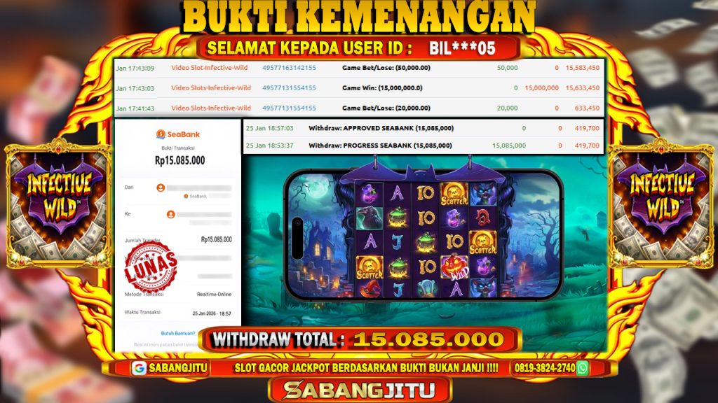 BUKTI KEMENANGAN 25 JANUARI DI GAME Infective Wild-PRAGMATIC PLAY WITHDRAW 15.085.000.,-