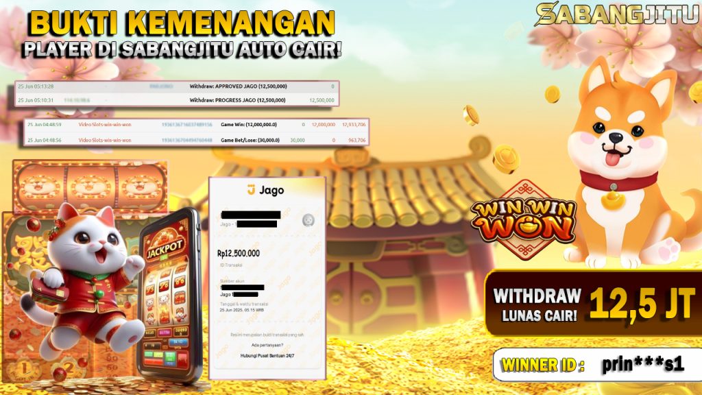 BUKTI KEMENANGAN 25 JUNI DI GAME WIN-WIN-WON WITHDRAW RP 12.500.000.,-