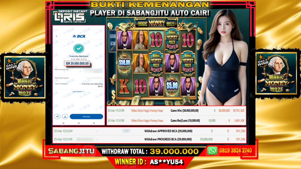 BUKTI KEMENANGAN 25 MARET DI GAME MAGIC MONEY MAZE ( PRAGMATIC PLAY ) WITHDRAW 39.000.000.,-