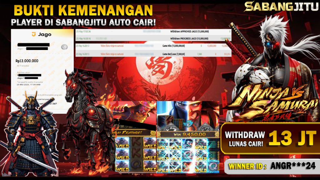 BUKTI KEMENANGAN 25 MEI DI GAME NINJA VS SAMURAI WITHDRAW 13.000.000.,-