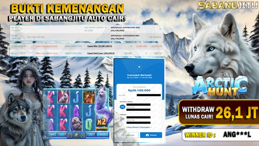 BUKTI KEMENANGAN 26 JULI DI GAME ARCTIC-HUNT WITHDRAW RP 26.100.000.,-