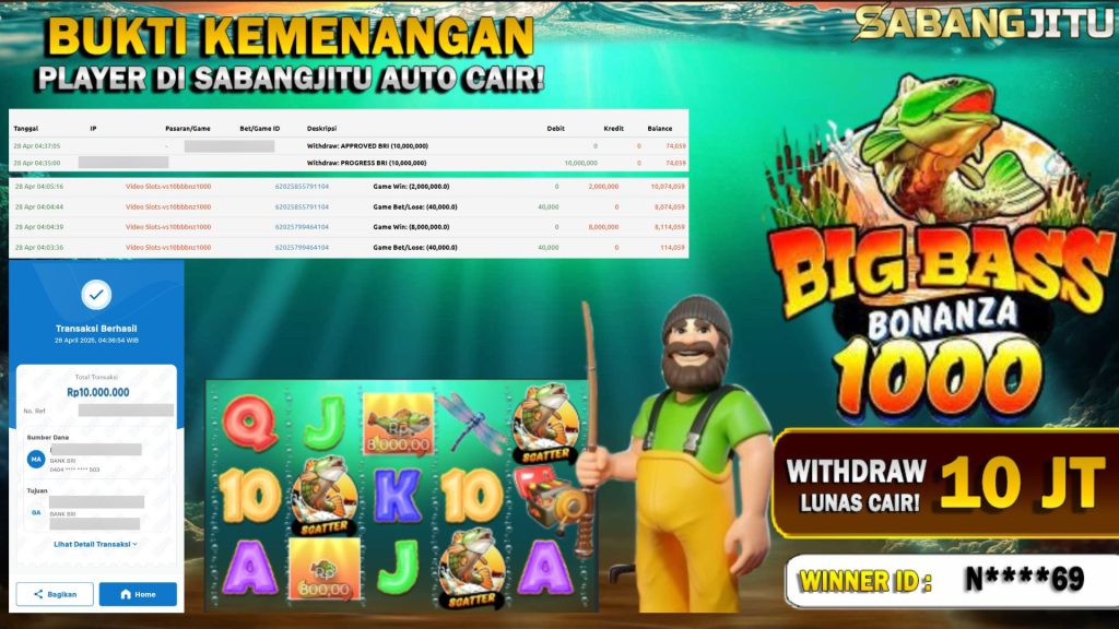 BUKTI KEMENANGAN 28 APRIL DI GAME BIG BASS BONANZA 1000 WD RP 10.000.000.,- JUTA