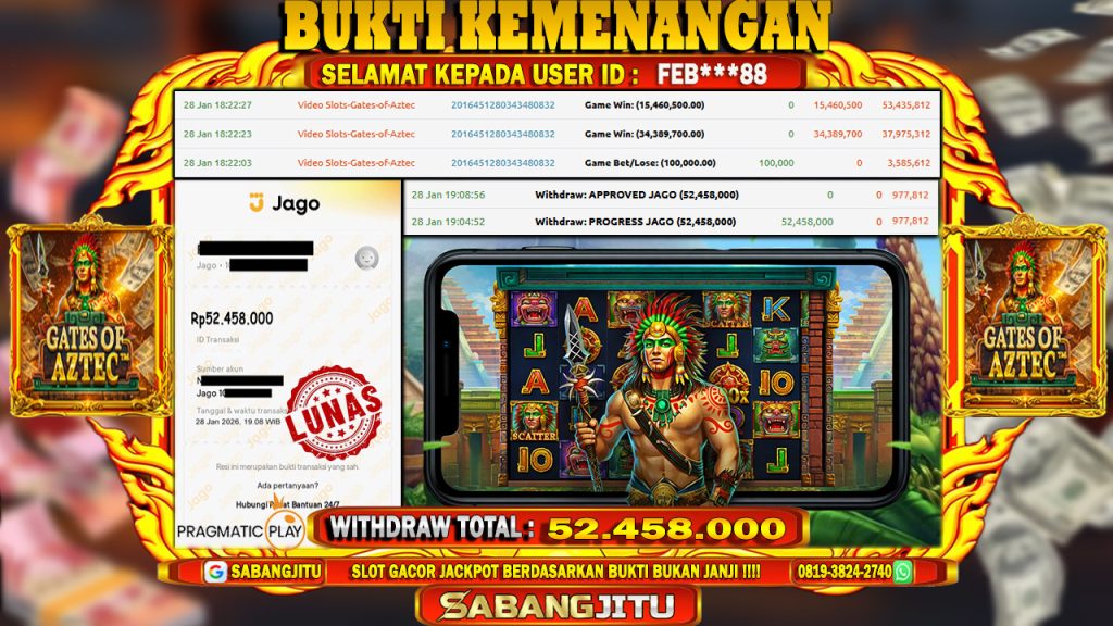 BUKTI KEMENANGAN 28 JANUARI DI GAME Gates of Aztec-PRAGMATIC PLAY WITHDRAW 52.458.000.,-