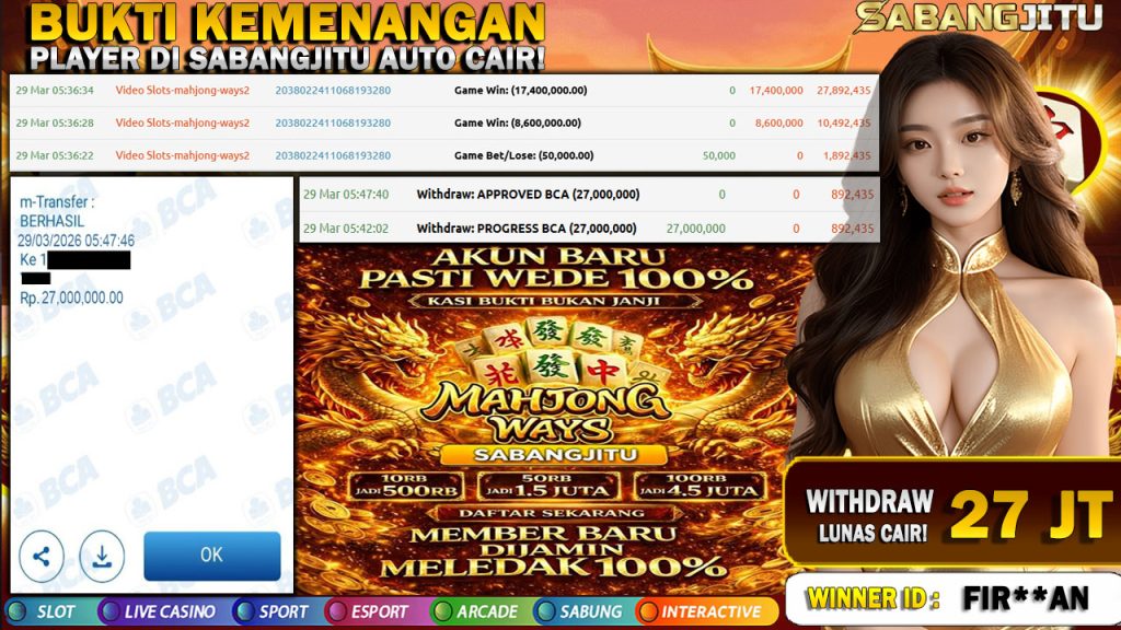 Bandar togel SABANGJITU merupakan bandar togel dan slot online yang membayar semua kemenangan member hingga lunas. Setiap pembayaran pada situs kami dilakukan dengan cara transfer ke rekening tujuan yang sudah di daftarkan pada situs togel online kami, Pembayaran hanya dapat di proses jika rekening yang di daftarkan telah valid dan dapat di transfer. Semua kemenangan member yang mendapatkan hadiah jackpot terbesar akan kami posting agar semua pemain dapat melihat bandar situs terpercaya SABANGJITU ini membayar semua kemenangan member hingga lunas. Setiap postingan yang kami posting akan kami lakukan sensor pada nomor rekening 4 digit dan nama rekening untuk menjaga privasi dan kerahasiaan member. Postingan Jackpot yang kami posting agar member atau pemain yang belum pernah bermain bisa melihat bandar togel Bukan Kaleng Kaleng Seperti SABANGJITU ini, Semua postingan jackpot yang kami posting dapat di lihat data keasliannya melalui nomor reff yang di tunjukan pada bank atau mbanking saat kita melakukan transfer.