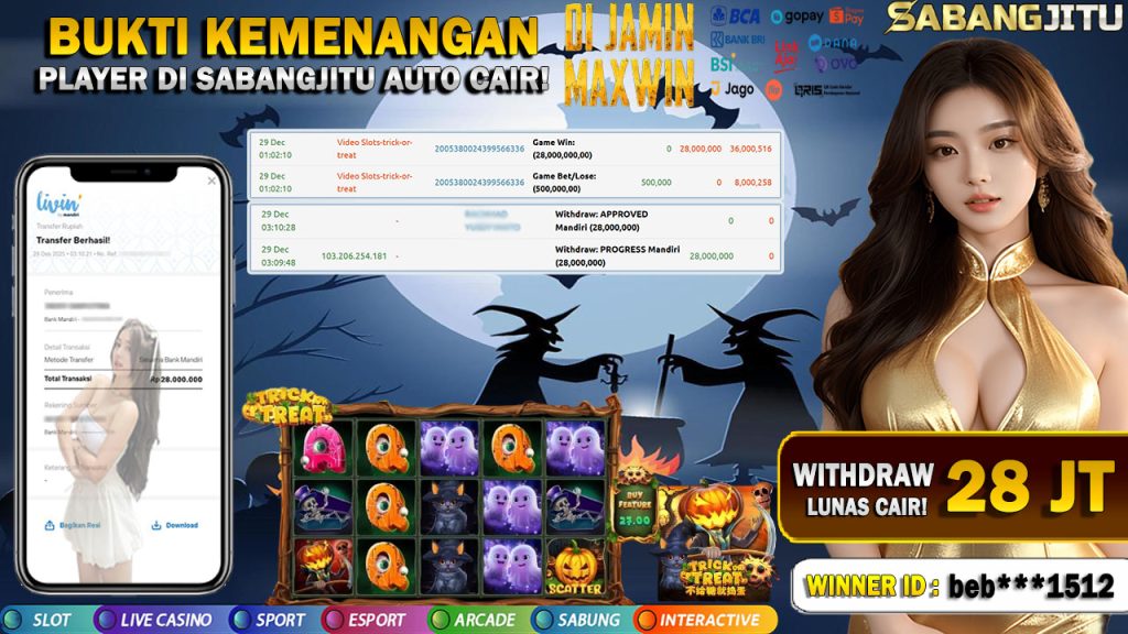 BUKTI KEMENANGAN 29 DESEMBER DI GAME Trick Or Treat WITHDRAW 28.000.000 LUNAS.