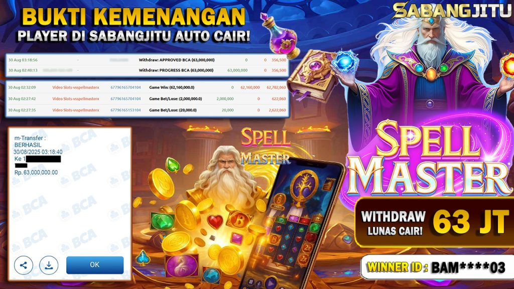 BUKTI KEMENANGAN 30 AGUSTUS DI GAME SPELLMASTER WITHDRAW 63.000.000.,-