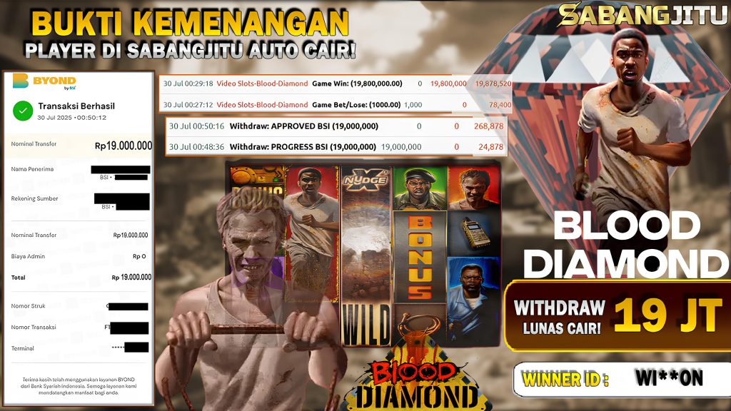 BUKTI KEMENANGAN 30 JULI DI GAME Blood Diamond WITHDRAW RP 19.000.000.,-