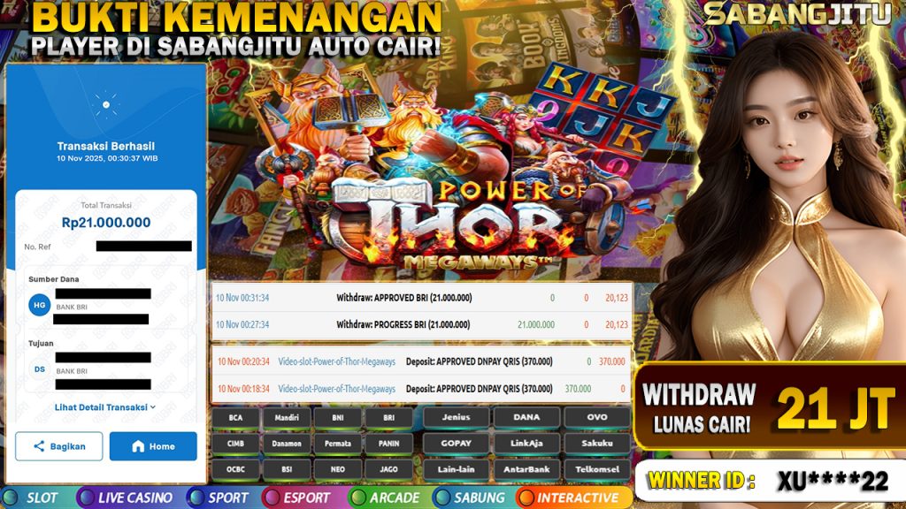 BUKTI KEMENANGAN10 NOVEMBER DI GAME Power of Thor Megaways WITHDRAW 21.000.000.,-