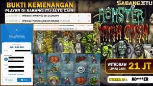 BUKTI KEMENANGAN 25 JULI DI GAME Monster Mash Cash WITHDRAW RP 21.000.000.,-