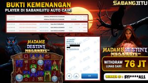 BUKTI KEMENANGAN 21 JUNI DI GAME MADAME DESTINY MEGAWAYS WITHDRAW RP 76.000.000.,-
