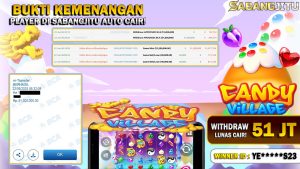 BUKTI KEMENANGAN 22 JUNI DI GAME CANDY VILLAGE WITHDRAW RP 51.000.000.,-