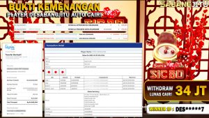 BUKTI KEMENANGAN 05 MEI DI GAME LIVE CASINO SUPER SIC BO WITHDRAW RP 34.000.000.,-