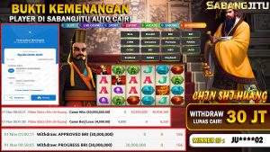 BUKTI KEMENANGAN 01 NOVEMBER DI GAME CHIN SHI HUANG WITHDRAW 30.000.000.,-